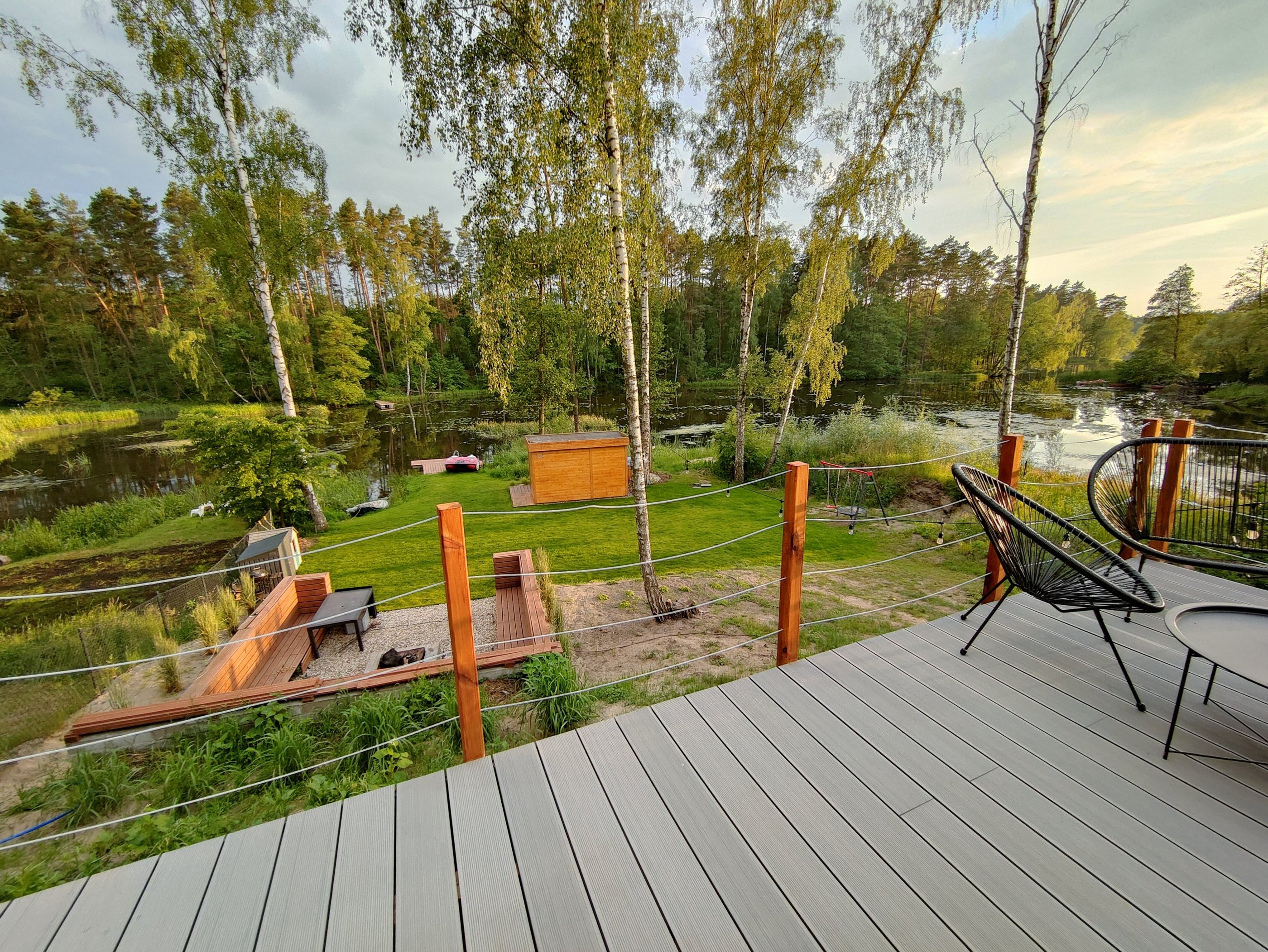 To miejsce stworzyliśmy do wypoczynku. Jest idealne na weekendowy relaks lub wakacyjny chillout. Domki położone są na skarpie z bezpośrednim prywatnym dostępem do rozlewiska Zalewu Koronowskiego i bajecznym widokiem z tarasu. Gwarantujemy, że już po 5 minutach spędzonych na tarasie znajdziecie wytchnienie dzięki śpiewowi ptaków, szumowi traw a przy odrobinie szczęścia wasz wzrok przykuje brodząca w wodzie czapla.