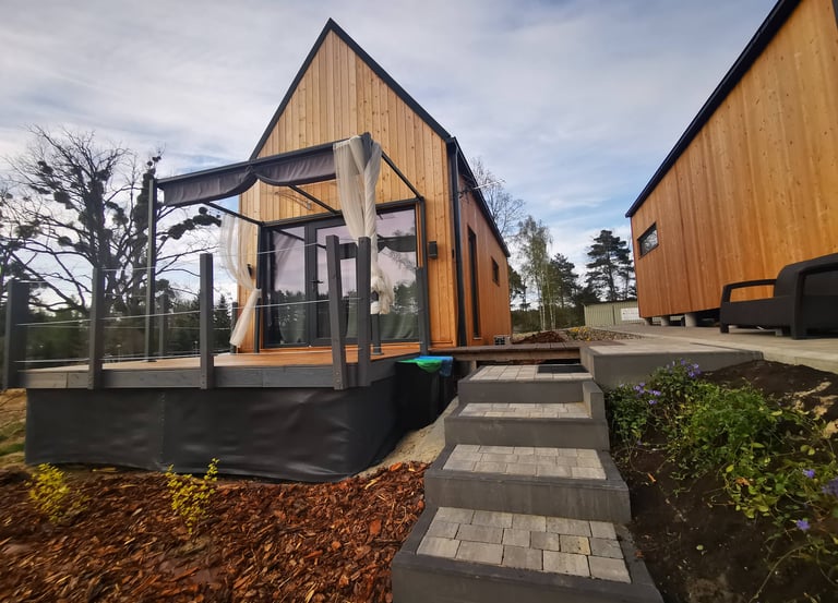 Wybraliśmy nowoczesną formę i butikowy styl, tak byście mogli poczuć się komfortowo niczym w pokoju hotelowym, a jednocześnie w spokoju obcować z naturą.